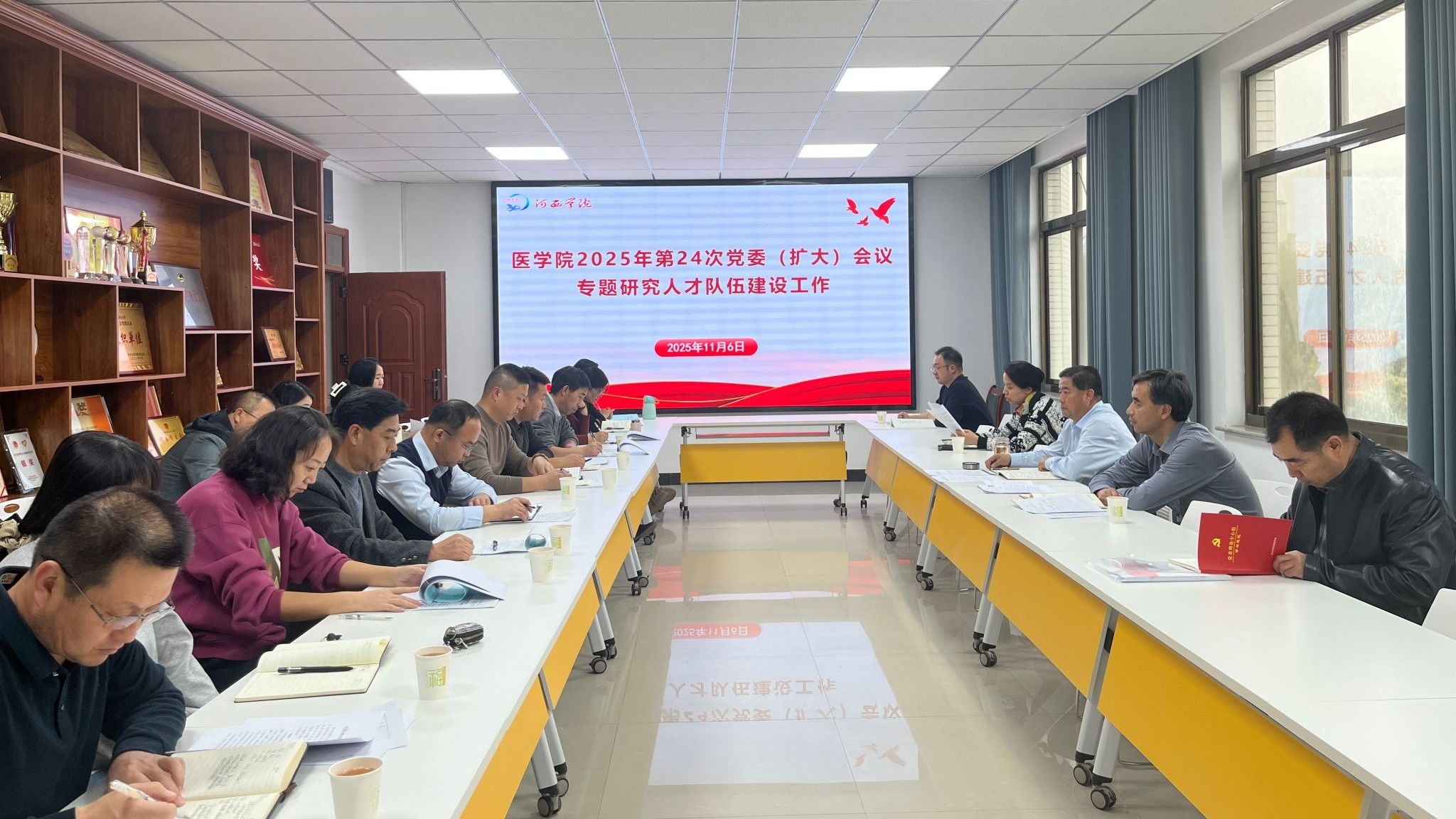 11月6日,学院召开党委(扩大)会议,专题研究人才队伍建设工作。学院党委委员、班子成员、科级干部和教研室主任参加会议。