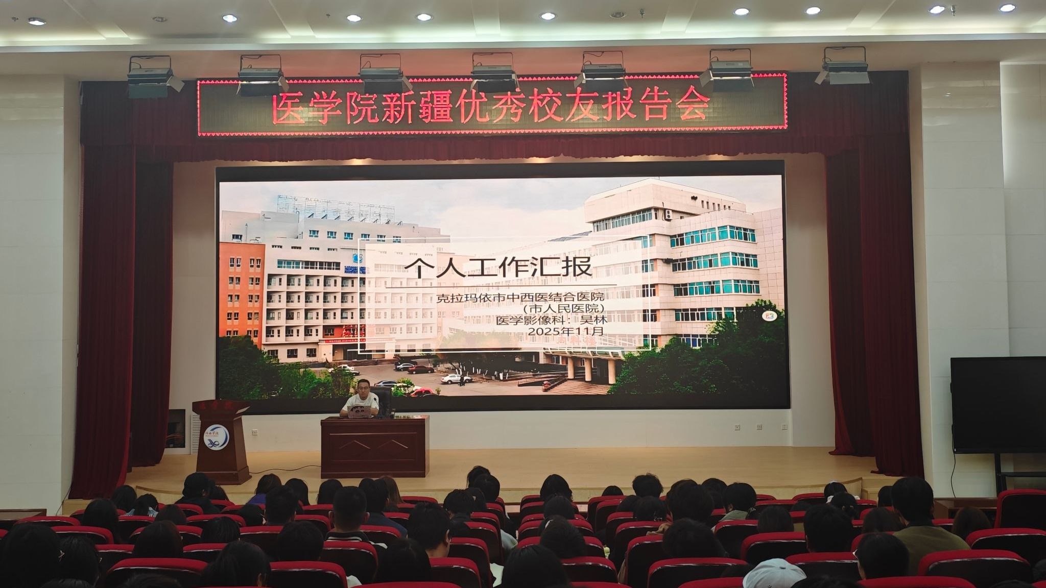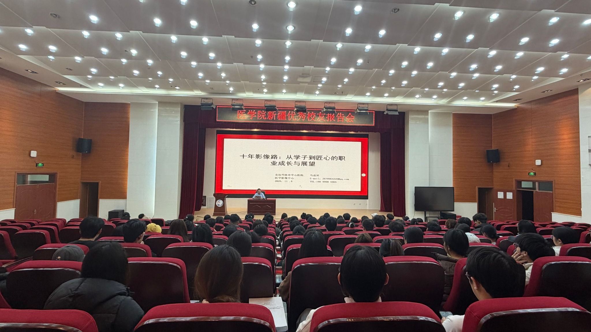 11月10日,学院邀请新疆优秀校友克拉玛依市中心医院马进昇、克拉玛依市中西医结合医院吴林来院进行经验分享交流,学院200余名学生参加。