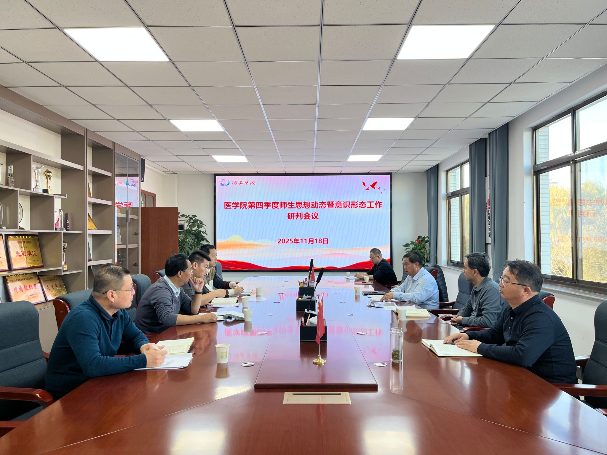 11月18日,学院召开2025年第四季度师生思想动态暨意识形态工作研判会议,学院领导、各科室负责人参加会议。