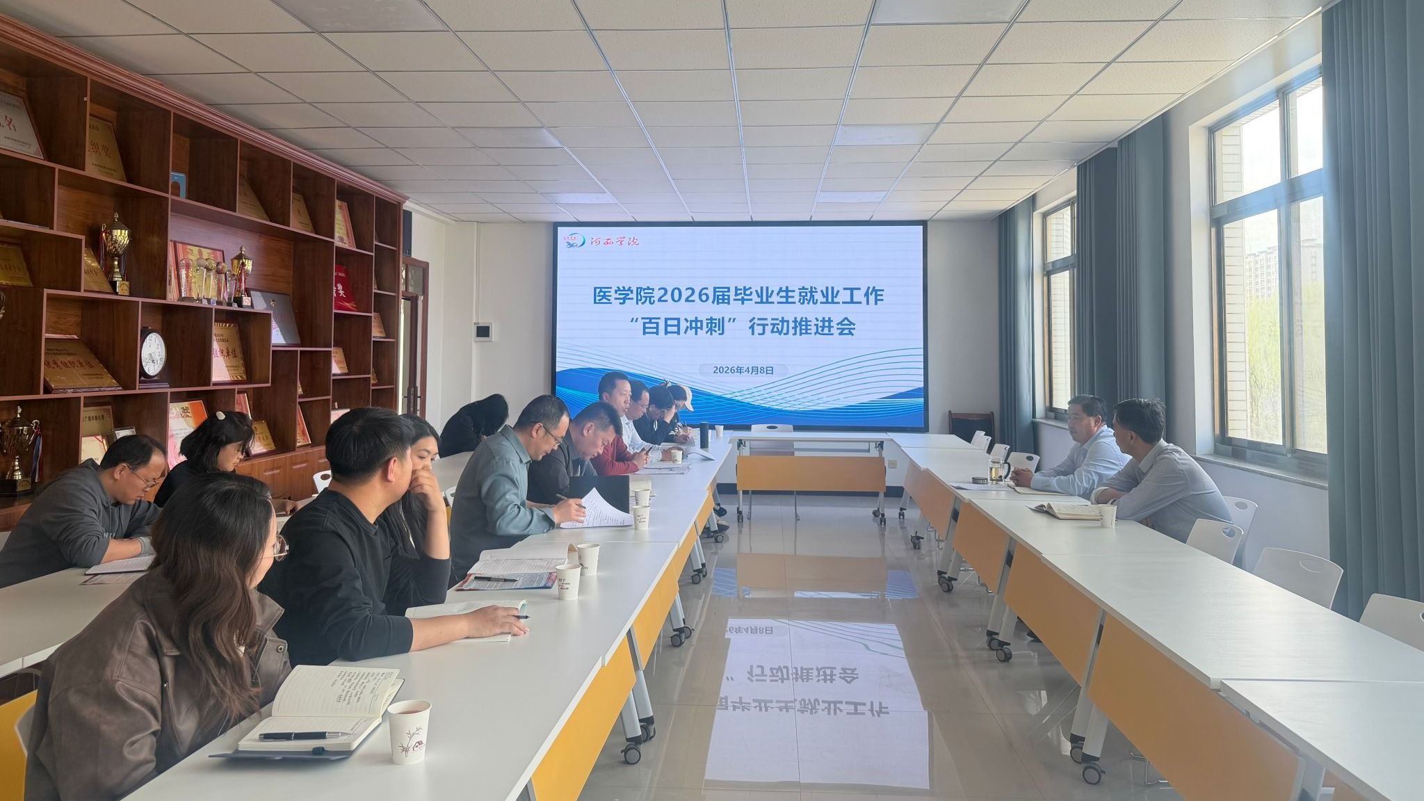 4月8日,学院召开2026届毕业生就业工作“百日冲刺”行动推进会。学院负责人、各办公室负责人、2026届毕业班班主任及全体辅导员参加。