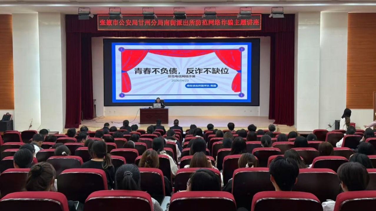陈璐副所长结合一线办案经验,讲解了大学生易遭遇的十大诈骗类型,结合张掖本地及高校真实案例,以案释法,拆解诈骗作案套路、剖析受骗原因,直观展现电信诈骗的隐蔽性与危害性;同时针对大学生特点,传授实用反诈策略,提醒学生严守个人信息、使用正规支付渠道,牢记“不轻信、不透露、不转账”的反诈准则,并分享反诈顺口溜,帮助学生强化防范意识、牢记反诈要点。