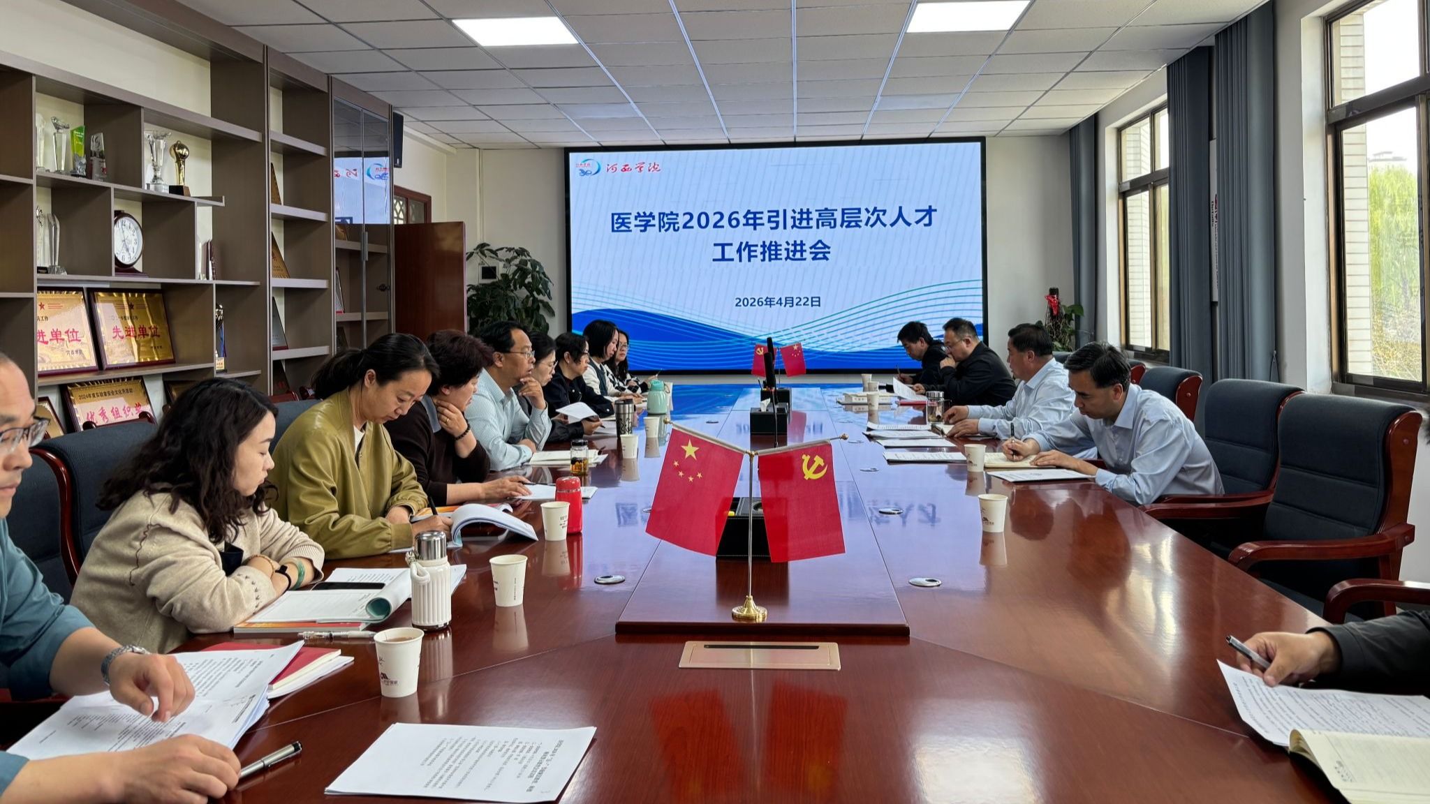 4月22日,学院召开2026年引进高层次人才工作推进会,学院班子成员、各办公室(中心)主任、教研室主任、各招聘组成员、招才引智工作组成员参加。