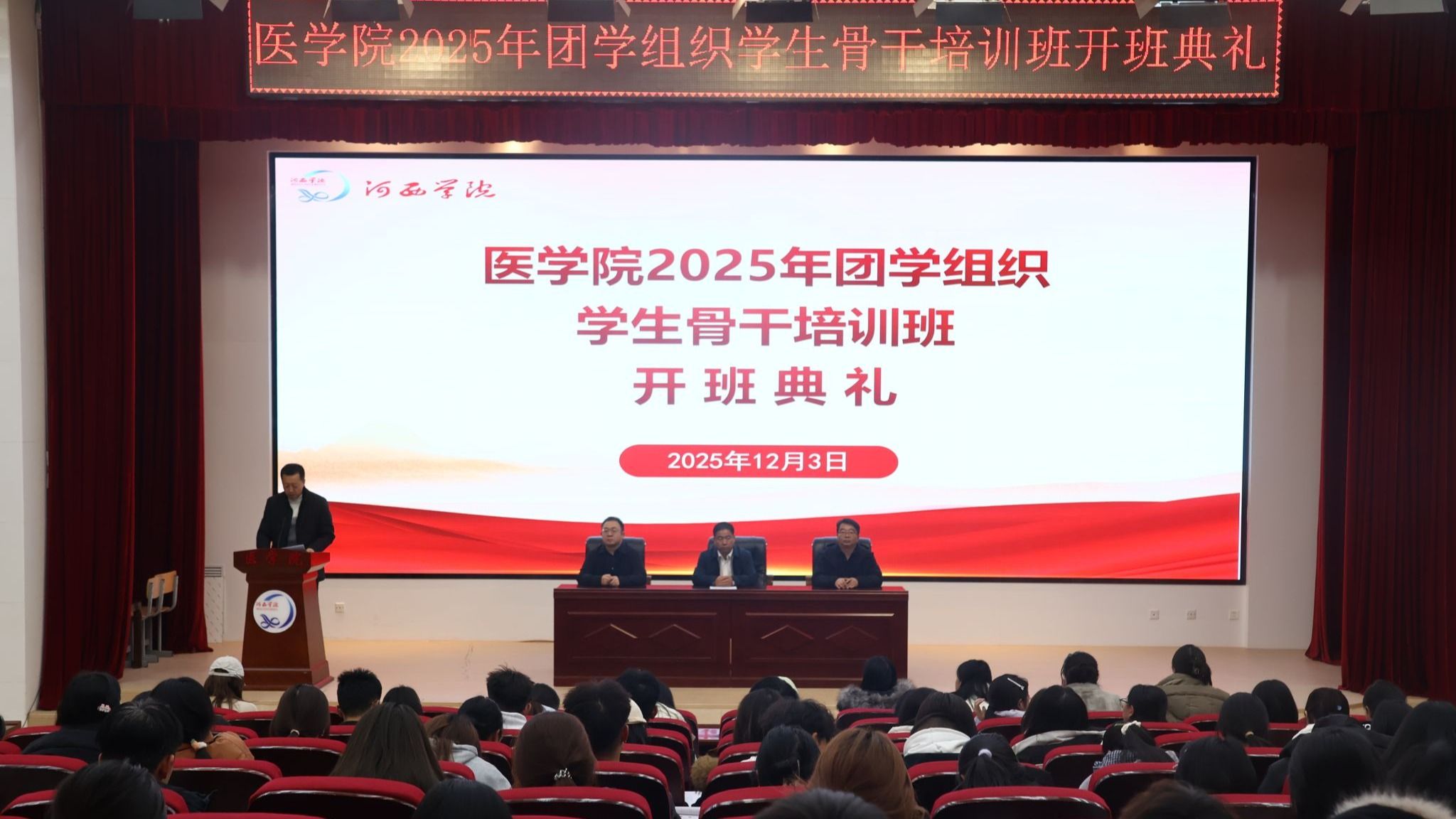 12月3日,学院2025年团学组织学生骨干培训班开班典礼在学术报告厅举行。学院党委书记、副院长、分团委书记、全体辅导员及培训班全体学员共280余人参加了典礼。